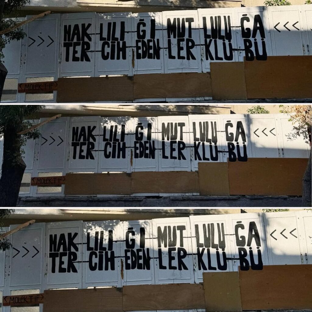 Ben ise bu yazılamalarla ilk kez 3 Eylül 2025 tarihinde Başçavuş Sokak 94 numaradaki Fazilet Apartmanı yıkımında, “Haklılığı Mutluluğa Tercih Edenler Kulübü” cümlesiyle karşılaşmıştım.