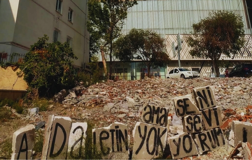 Tam fotoğrafını çekiyorken arkamdan, “Bir dakika bakar mısınız?” diye bir ses duydum. Sese doğru döndüğümde binanın karşısındaki lokantanın önündeki masaya oturmuş, belli ki yokuşun yorgunluğundan dinlenmekte olan bir kadınla karşılaştım. Ne diyeceğim konusunda tereddütte olduğumu hissetmiş olacak ki cevap beklemeden “Bir şey soracağım,” diye devam etti. “Sizce ne anlatıyor o yazı?” Ben kentsel dönüşümle ilgili olduğunu düşündüğümü söylerken, kendisinin de öyle düşündüğü söyledi ve aslında retorik bir soruyla karşı karşıya olduğumu anladım. Cevap beklemiyordu. Kendi cevabını söylemek, konuşmak için bir imkan, temas arıyordu.