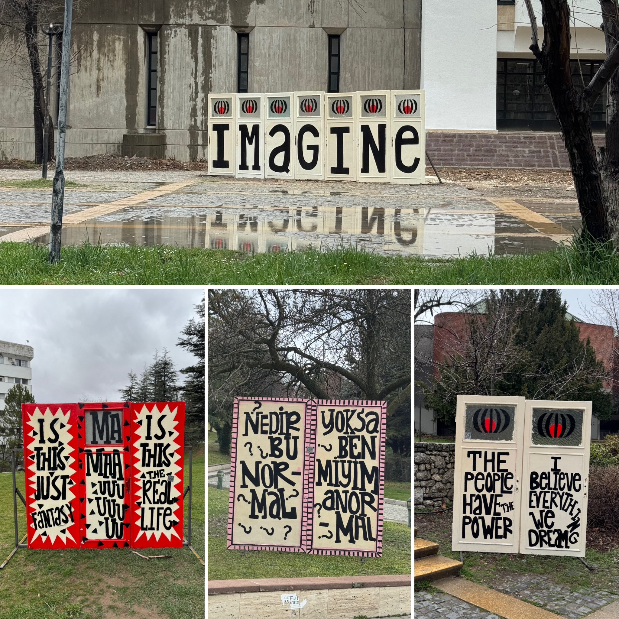 Bu yıl ODTÜ’nün 70’inci kuruluş yıl dönümü vesilesiyle, 28 Mart ve 4 Nisan tarihleri arasında ODTÜ Sanat 70 olarak geri geleceği duyurulan ODTÜ Sanat, anısı böylesine görkemli bir etkinlikti bizim açımızdan. Tanıtımı çerçevesinde “kampüsü yeniden çok katmanlı bir kültür ve sanat buluşmasına dönüştürürken, Ankara’nın kültür-sanat hayatına da güçlü bir katkı” sunacağı takdimiyle duyuruldu. Gerçekten de program kapsamındaki etkinlikler kampüsün geneline katman katman yayılıyordu. Bu katmanların Ankara’yla kurduğu ilişki de gözden kaçmıyordu. Bu temasın en görünürü, Kolektif Molektif kurucusu Ekin Kılıç Ezer ve Özbir Erciyas’in, Ankara Apartmanları’nın desteğiyle kampüs geneline yerleştirdikleri, Ankara’daki kentsel dönüşümden kalan kapılar üzerine işledikleri yıkım belleğine dair işlerden oluşuyordu.