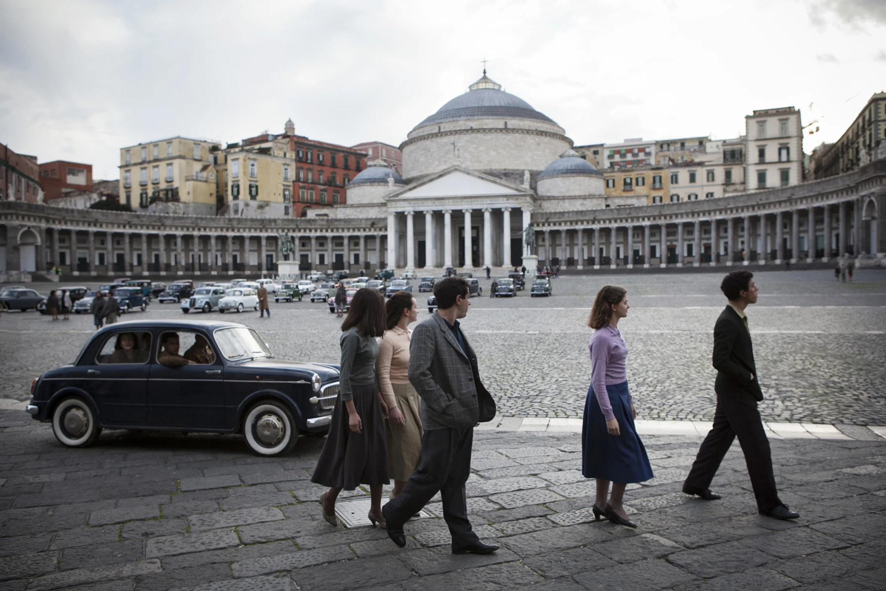 Ferrante, Napoli Romanları’nda Napoli’nin yıllar içindeki ekonomik, kültürel ve toplumsal durumunu hikayenin akışına çok başarılı ve doğal bir şekilde entegre ediyor. Hikayenin başladığı 1950’lerde, Napoli’deki bu mahalle ve sakinleri fakir, zor ve dış dünyaya kapalı. Şiddet gündelik hayatın bir parçası. Kirli ve tozlu sokaklarda top koşturan çocuklar, sıcak ve nem, avlular, balkonlara asılı çamaşırlar, yükselen bağırışlar, evlere hapsolmuş kadınlar. Ve tabii ki sosyal sınıflar. Napoli’de yaşayıp hiç denizi ve Vezüv’ü görmemiş insanlar ile tehlikeli ailelerin ekonomik hakimiyeti. İlk kitapta mahalleden pek çıkmıyor, “stradone”nin ötesini biz de görmüyoruz.